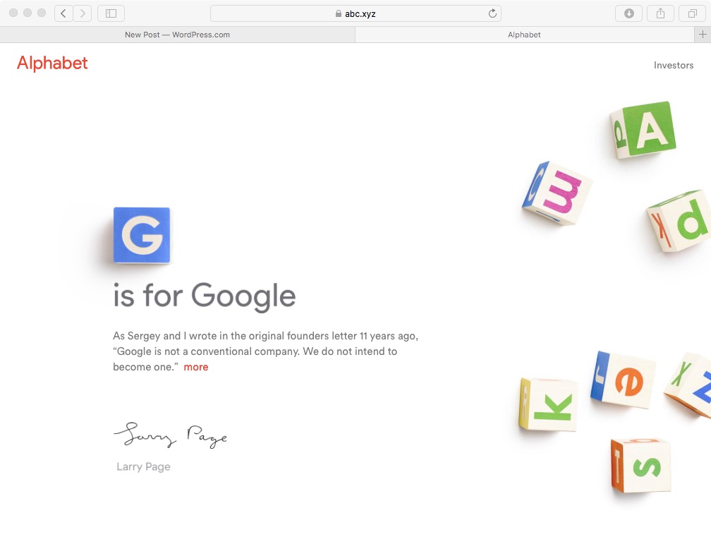 To a resounding WTF, it would appear that Google, the primary search engine for most of the internet as well as thermostats, self driving cars, etc, etc… has changed its name to…